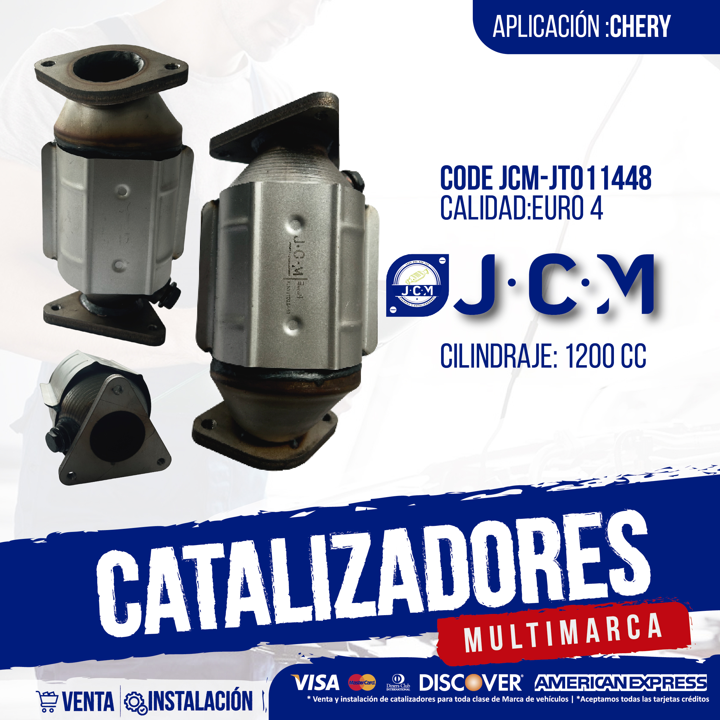 El Catalizador JCM JTO11448 Euro 4 está diseñado para vehículos Chery con motor 1200 cc, cumpliendo con los estándares de emisiones exigidos por la normativa Euro 4. Es una solución confiable para el reemplazo del sistema de escape, ideal cuando se presentan fallas en pruebas de emisiones o desgaste del catalizador original.