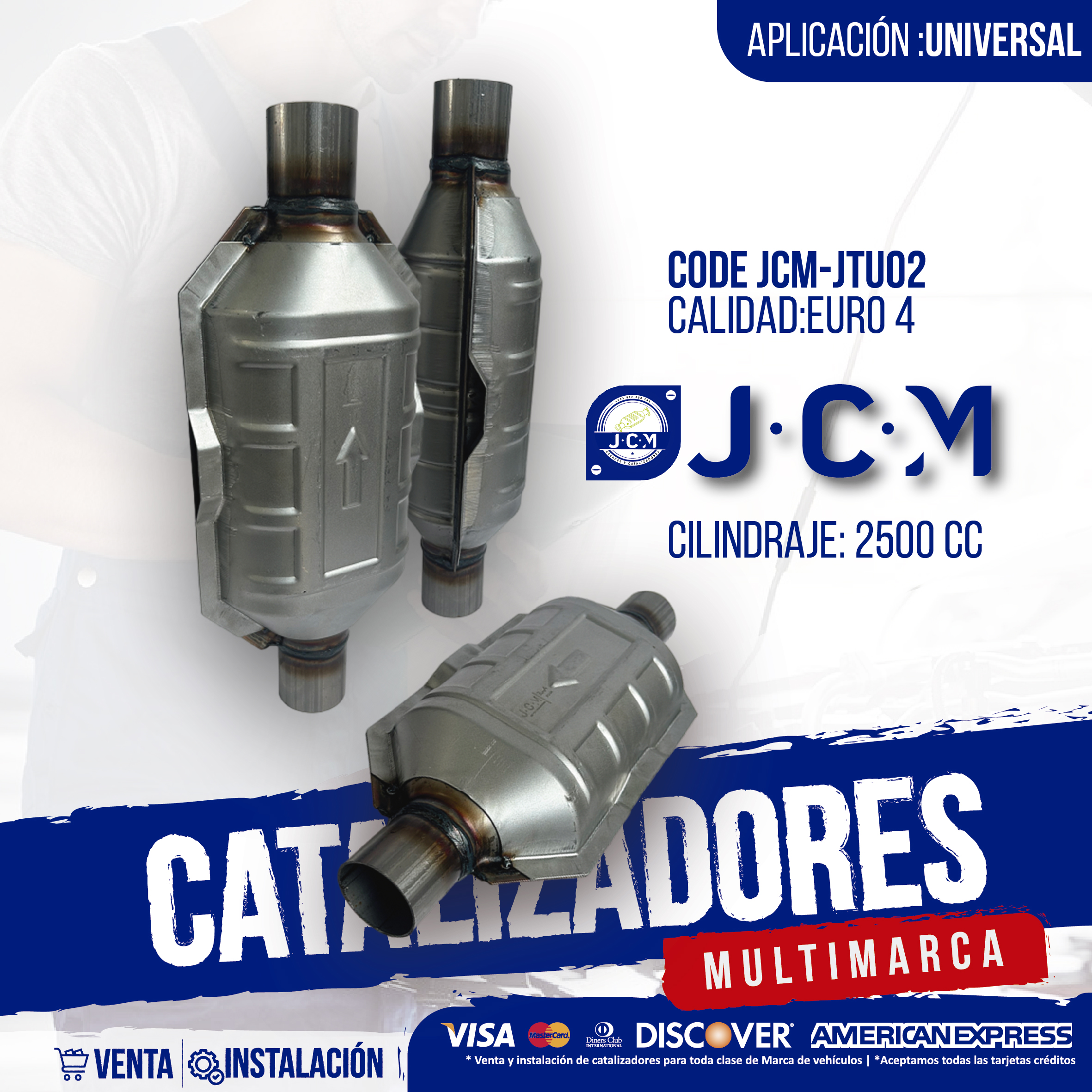 El Catalizador JCM JTU02 Universal Euro 4 está diseñado para vehículos con motores de hasta 2500 cc, cumpliendo con los estándares de emisiones exigidos por la normativa Euro 4. Es una solución versátil para reemplazo o adaptación del sistema de escape cuando el catalizador original se encuentra deteriorado o fuera de norma.
